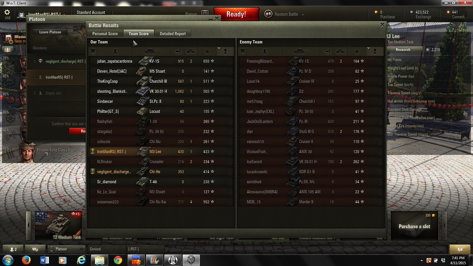 Non-Competitive tanks Match reported on 2015-04-11 19:58:19