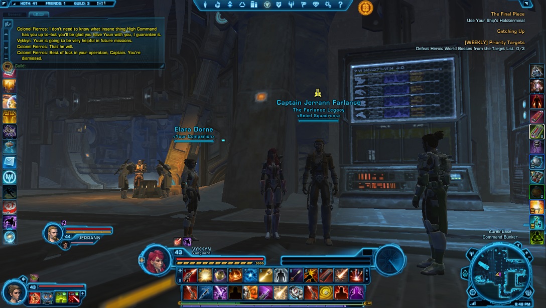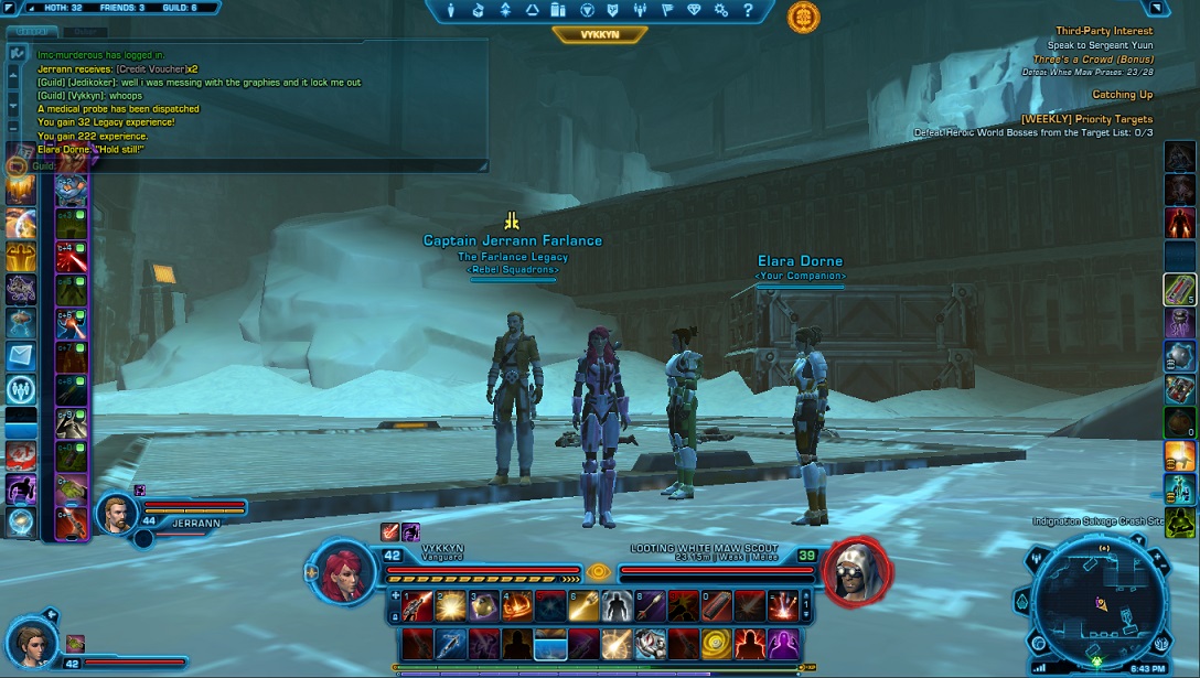 Worked on Ray's class quests on Hoth. Three's a Crowd (bonus) Third Party Interest. at least one more... don't remember where I wrote them down... Got Yuun as a companion.