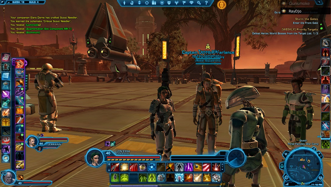 Started out on tattooine. Did Ray's companion Quest for Jorgan: Acceptable Risk. Did Jaran's companion quest for Corso: In a Pickle.