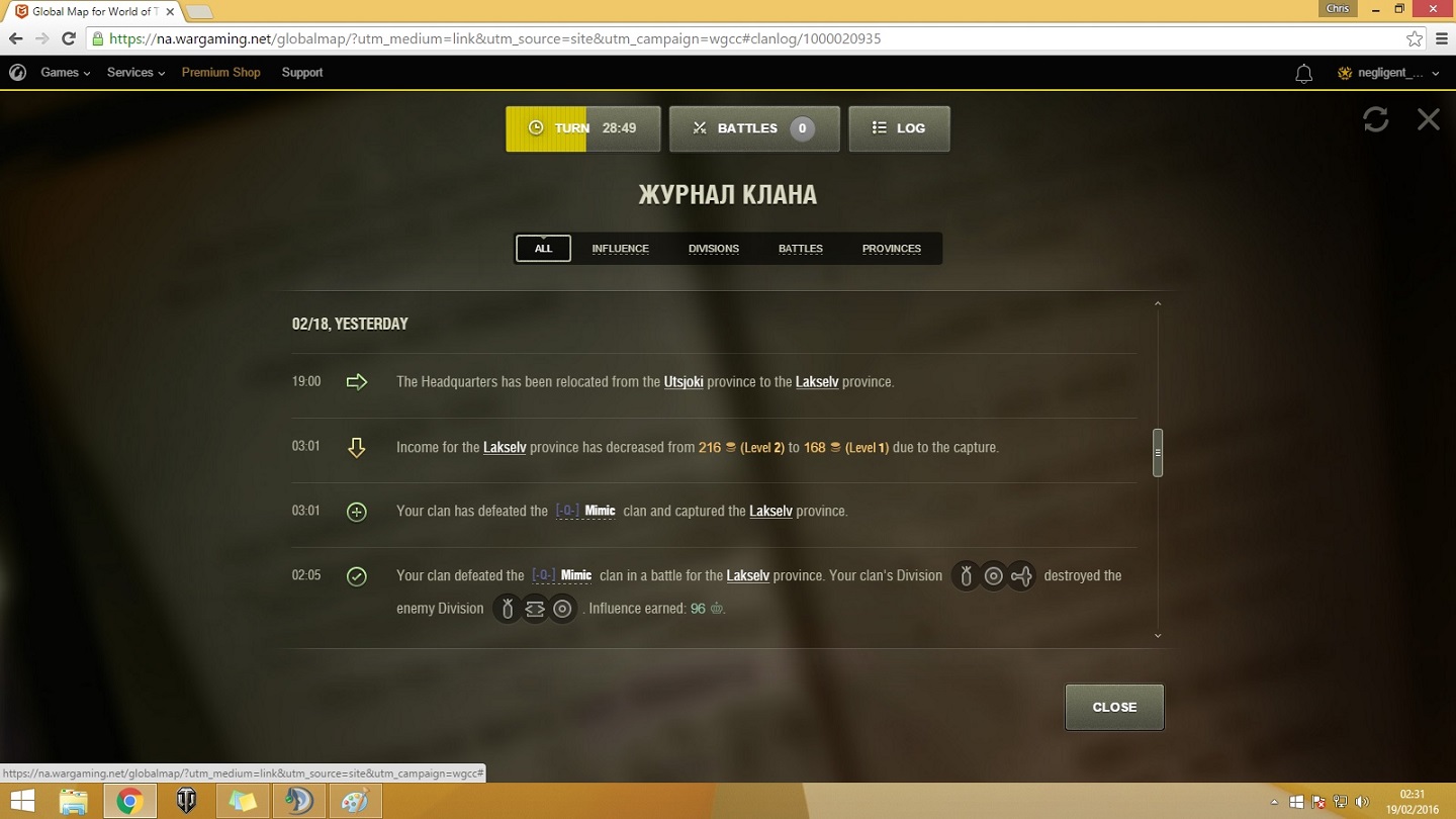 Non-Competitive tanks Match reported on 2016-02-19 14:43:54