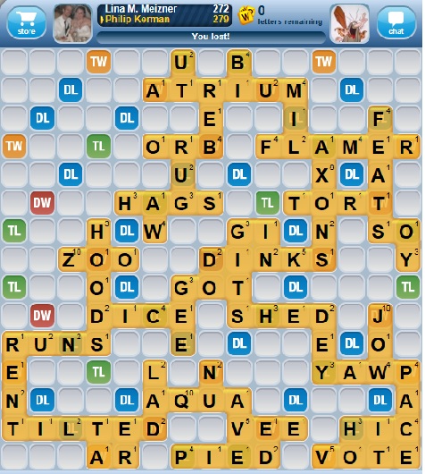 I still say that "vee" is cheating. :P I would have won if not for that. XD