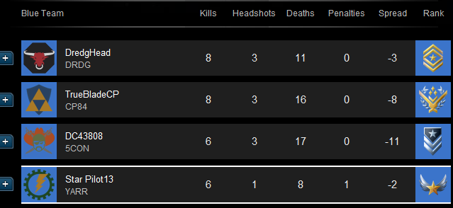 | ADM David "Heavy" Pasiechnyk (Star Pilot13) | 5 | 6 (0) | 8 |