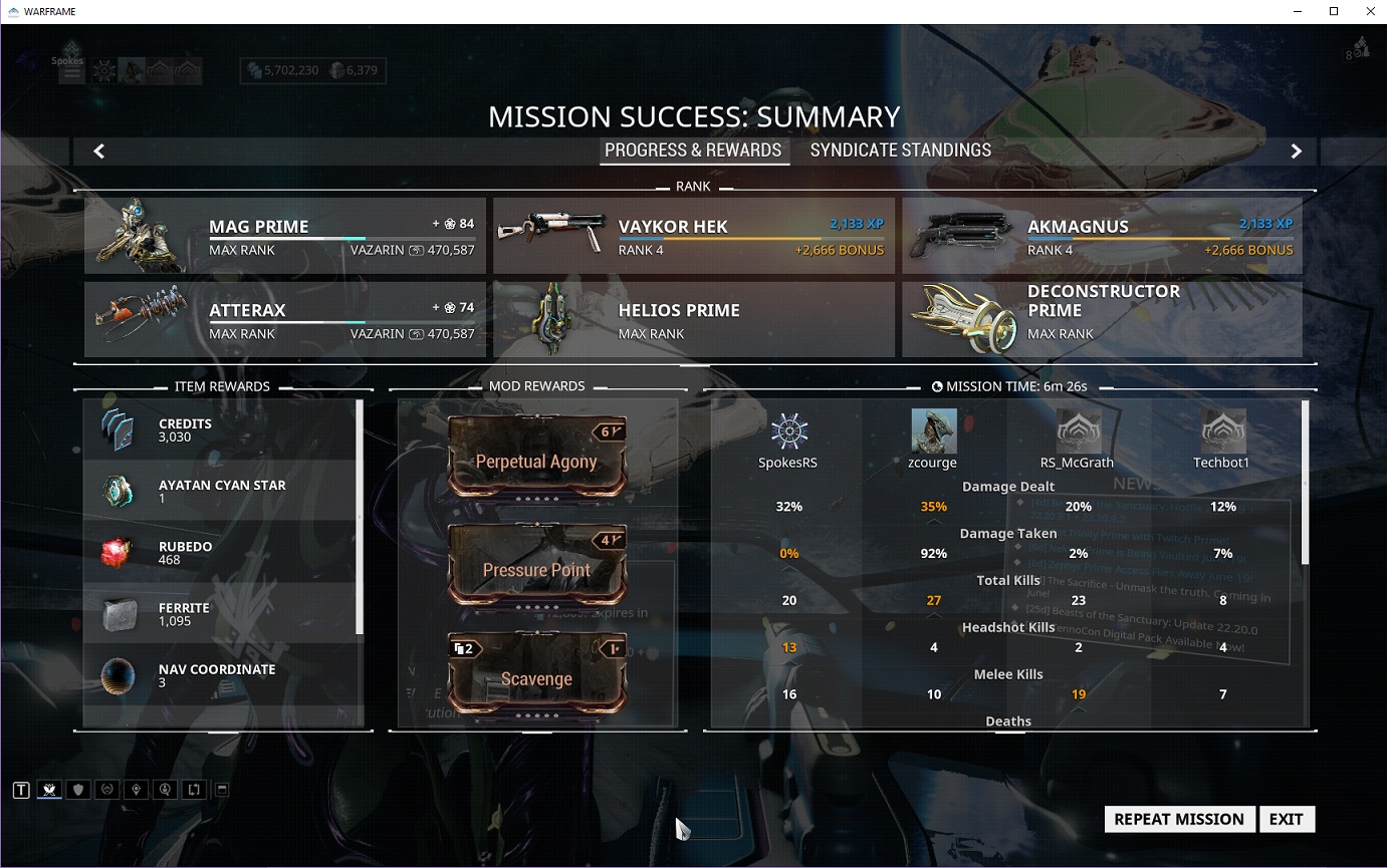 SpokesRS and RS_McGrath played a match of Warframe. I was going to post this as a MP Match. Is that double-dipping?