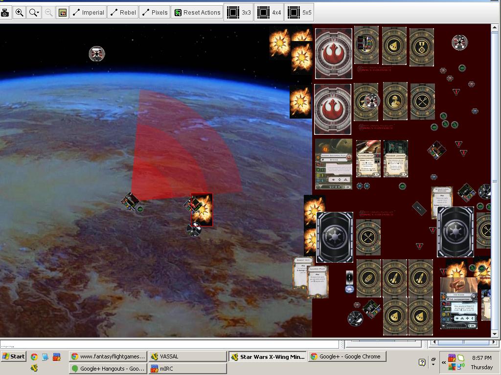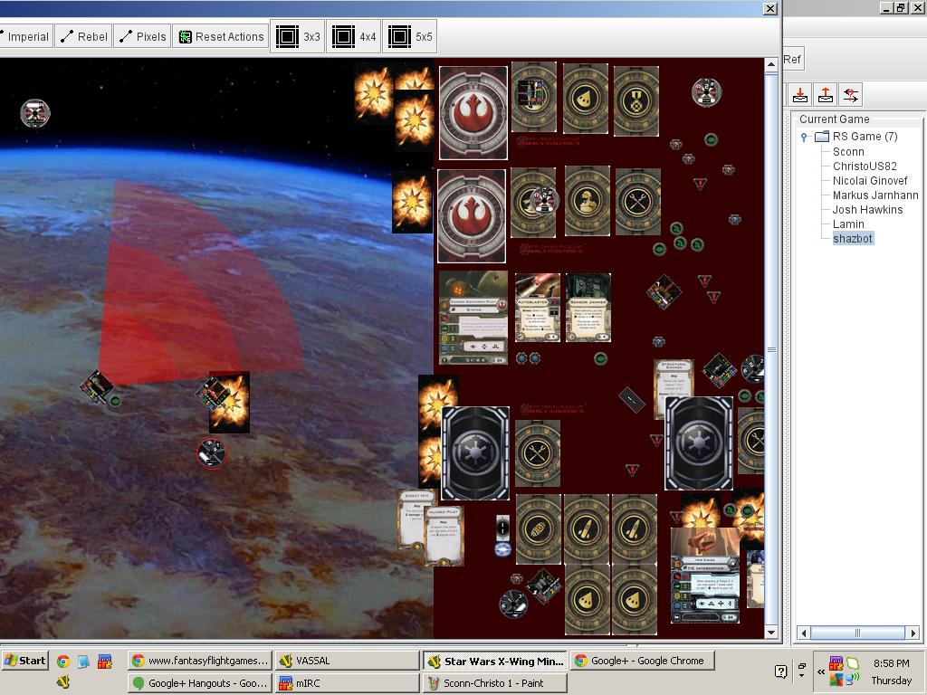Tense match - Sconn came back after losing Roark and Wedge to take down 3 ships with Dagger Squadron's pilot in a B-Wing with autoblasters.