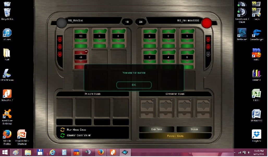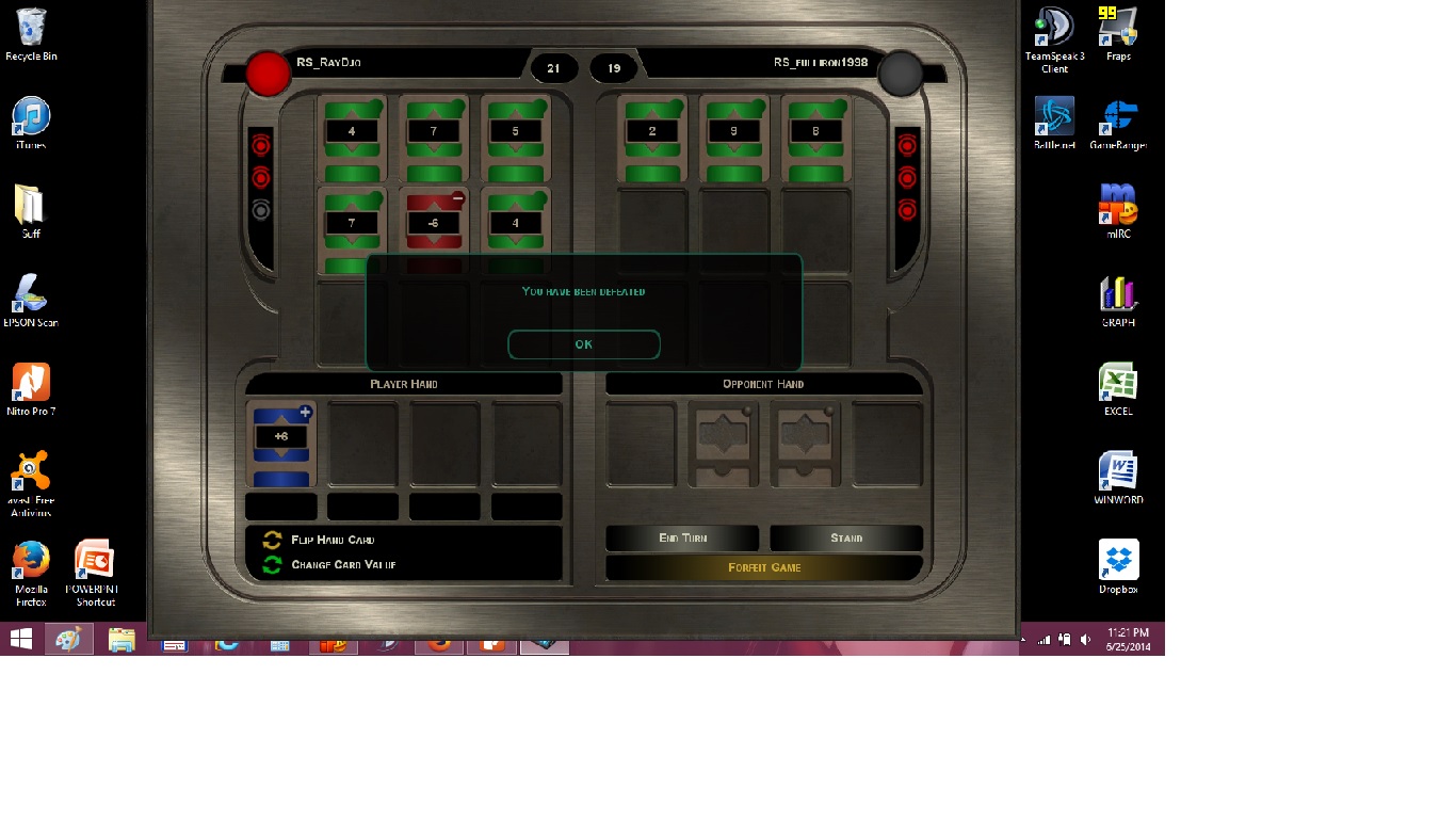 Fulliron and Ray played 2 games of pazaak on 6-24-14. They each won one match.