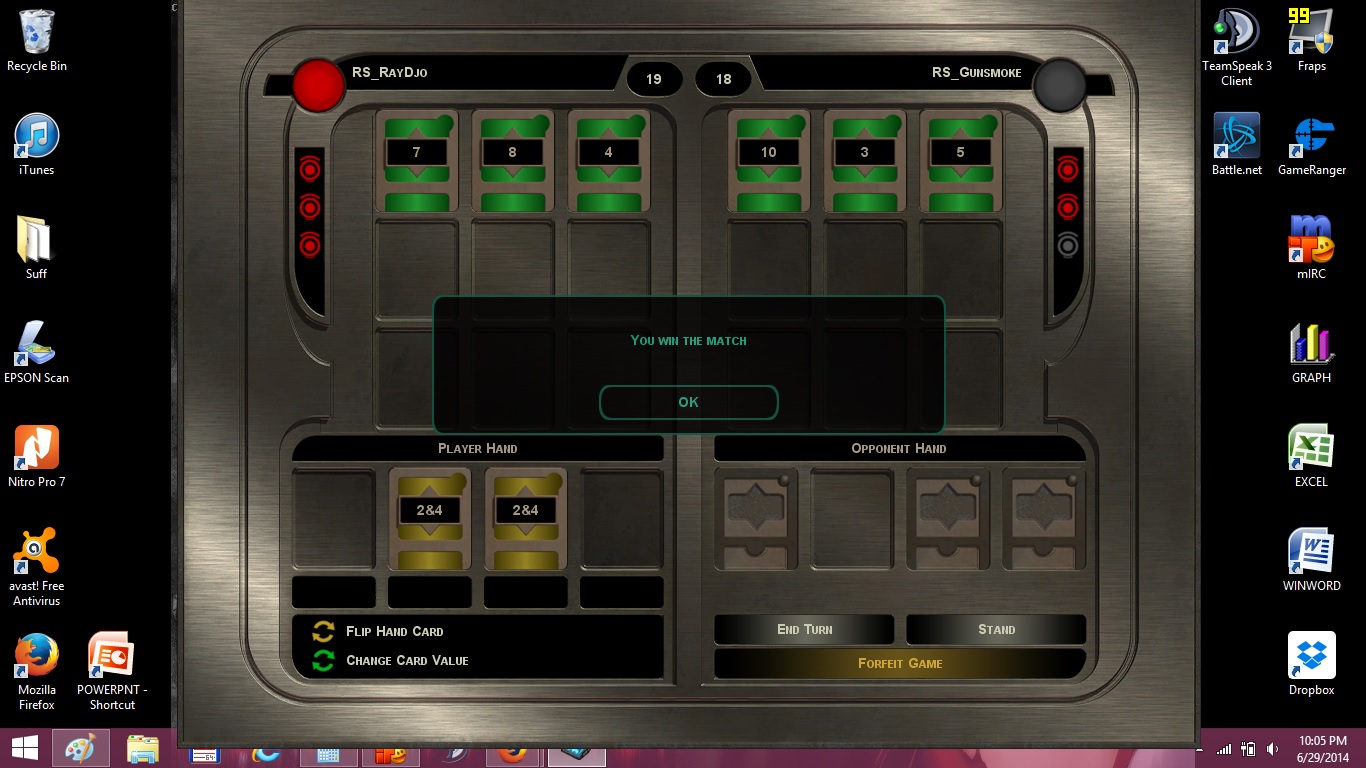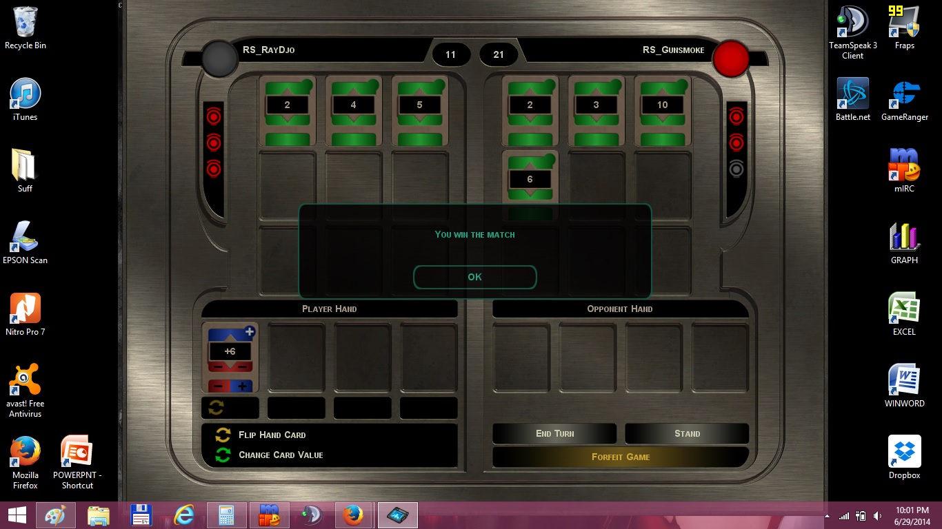 6-29-14 Ray and Jaran played pazaak. Ray won both matches.