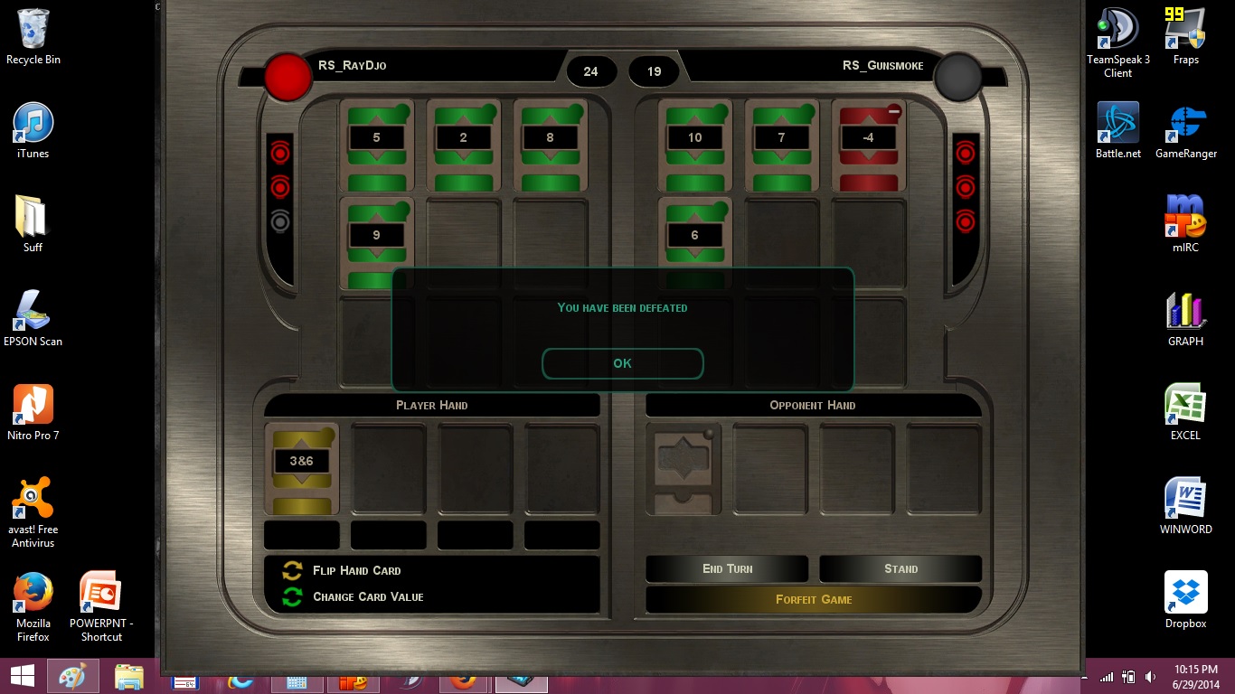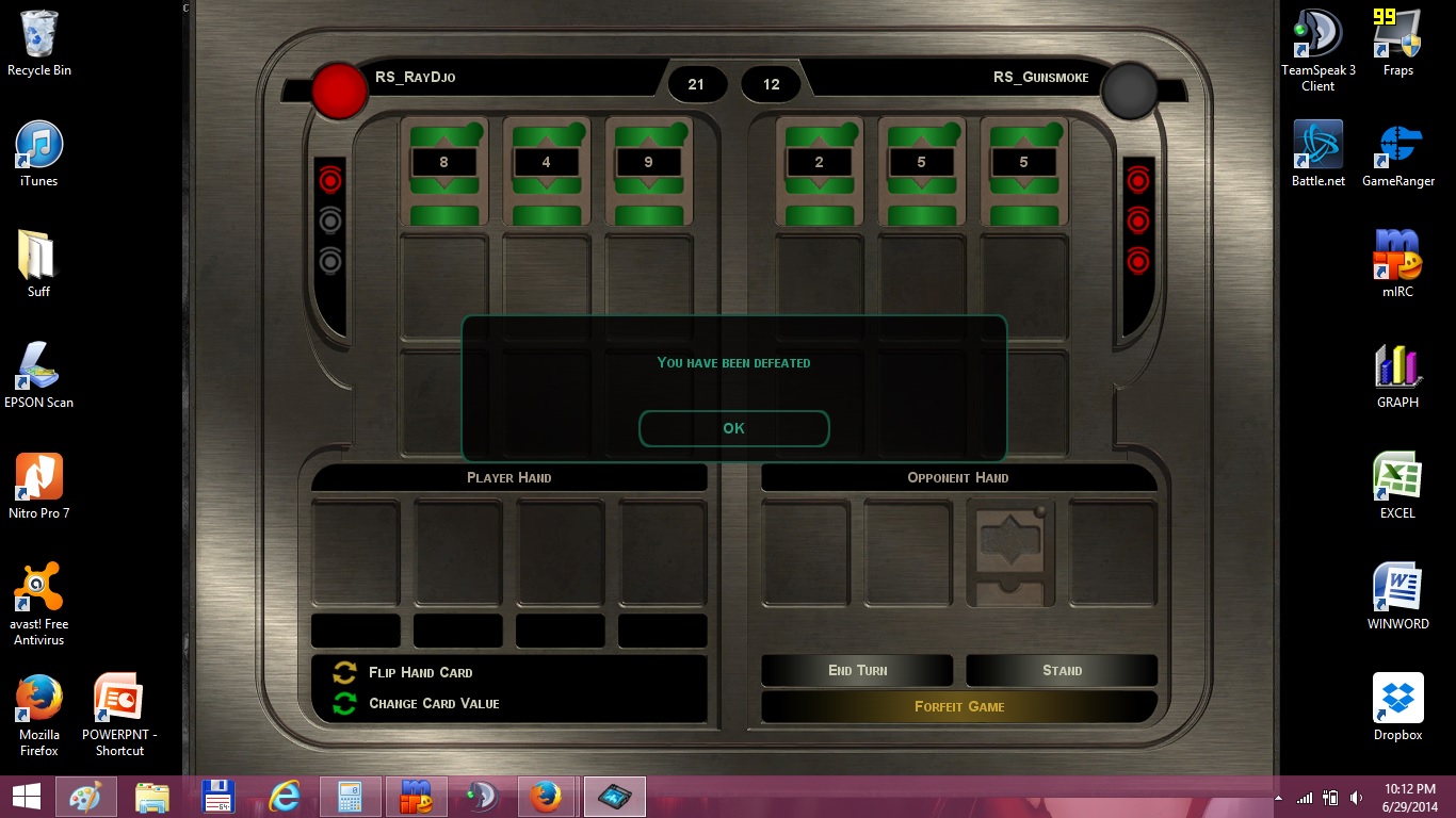 6-29-14 Ray and Jaran played pazaak. Jaram won both matches.