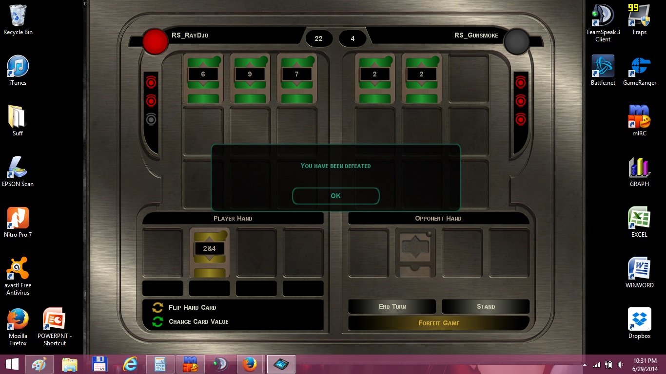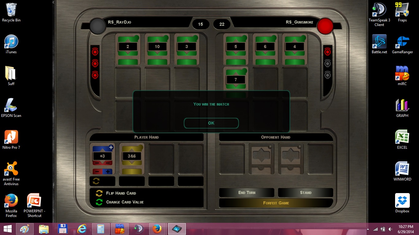 6-29-14 Ray and Jaran played pazaak. They each won one match.