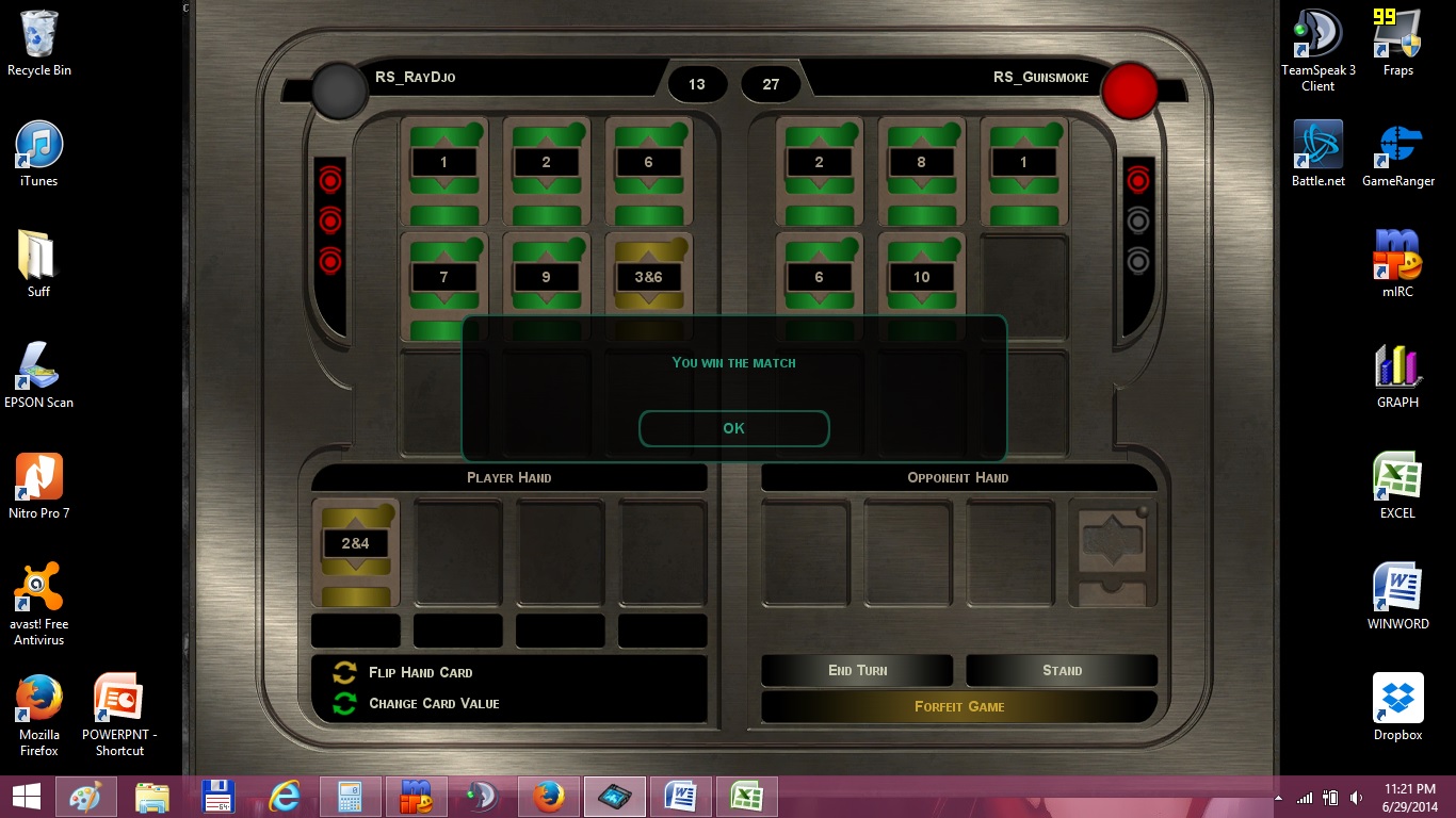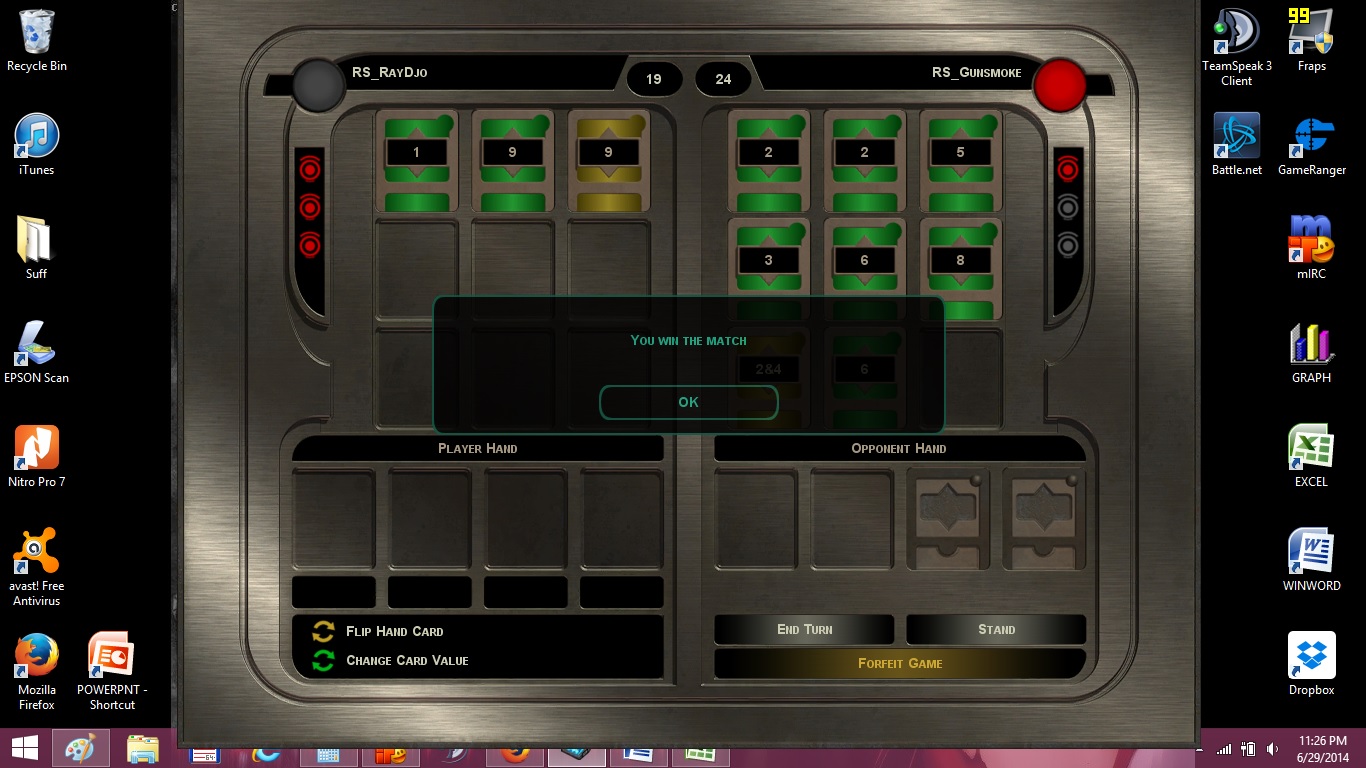 6-29-14 Ray and Jaran played pazaak. Ray won both matches.