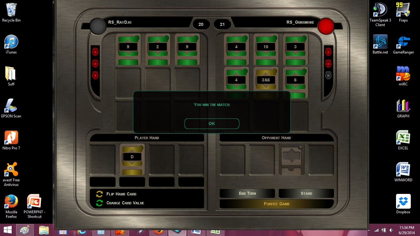 6-29-14 Ray and Jaran played pazaak. They each won one match.