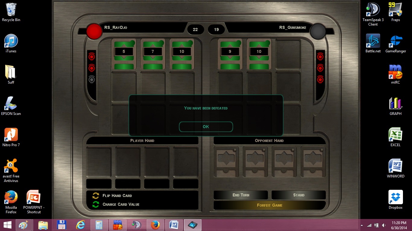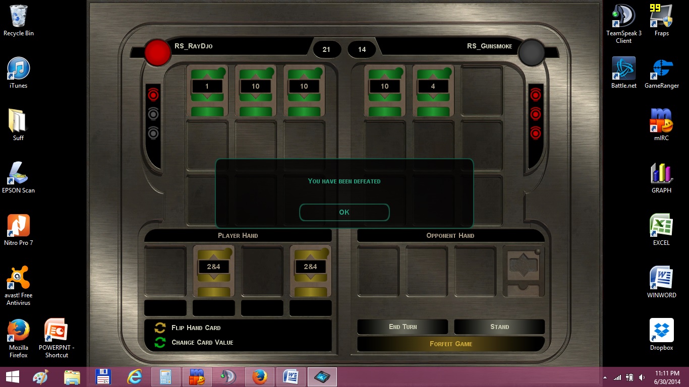 6-30-14 Ray and Jaran played pazaak. Jaran won both matches.