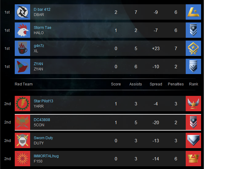 | ADM David "Heavy" Pasiechnyk (Star Pilot13) | 1 | 0 (0) | 0 |