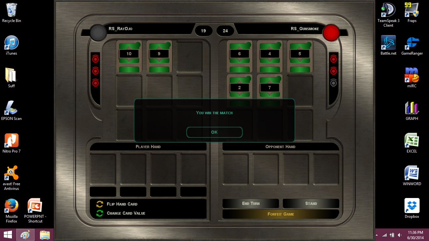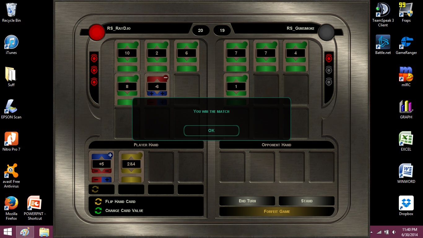 6-30-14 Ray and Jaran played pazaak. Ray won both matches.