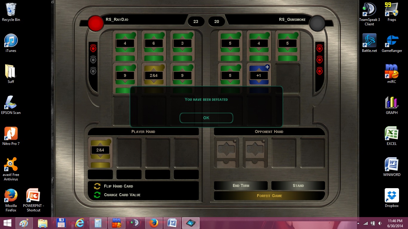6-30-14 Ray and Jaran played pazaak. Jaran won both matches.