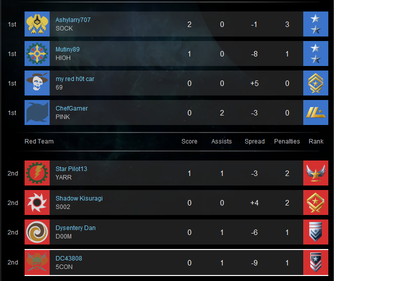 | ADM David "Heavy" Pasiechnyk (Star Pilot13) | 1 | 0 (0) | 0 |