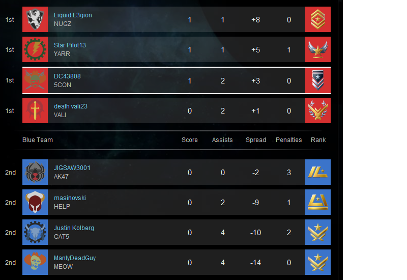 | ADM David "Heavy" Pasiechnyk (Star Pilot13) | 1 | 0 (0) | 0 |