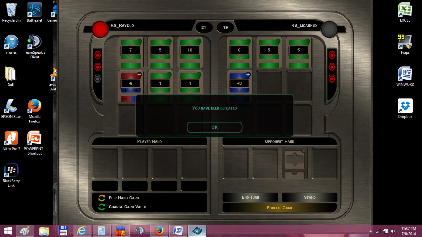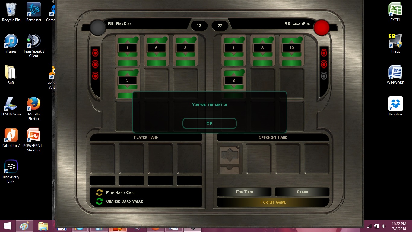 Ray vs Licah in Pazaak on July 8th, 2014. They each won one match.