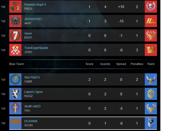 | ADM David "Heavy" Pasiechnyk (Star Pilot13) | 2 | 0 (0) | 0 |