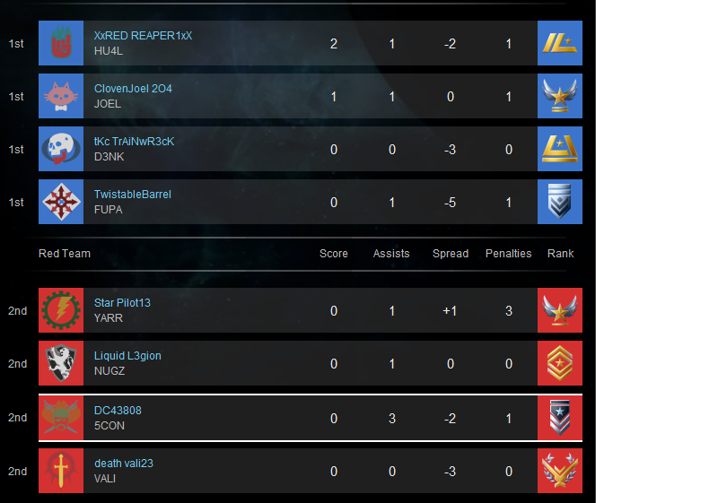 | ADM David "Heavy" Pasiechnyk (Star Pilot13) | 0 | 0 (0) | 0 |