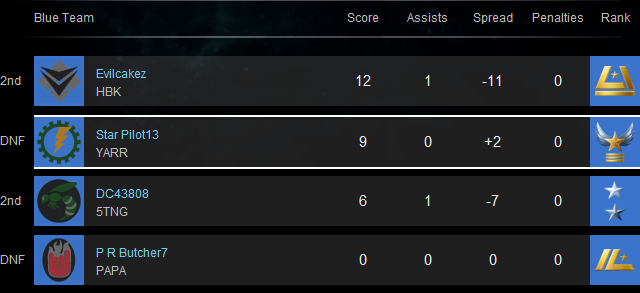 | ADM David "Heavy" Pasiechnyk (Star Pilot13) | 9 | 9 (0) | 7 |
