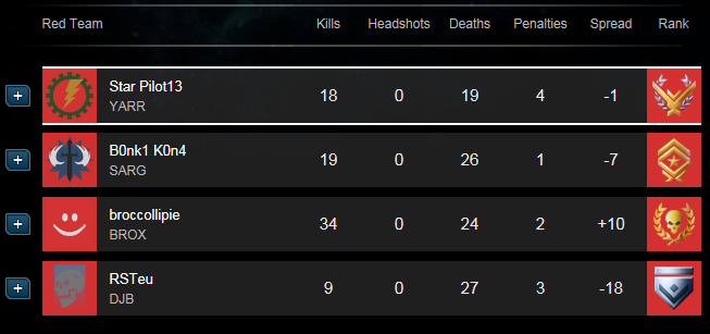 | ADM David "Heavy" Pasiechnyk (Star Pilot13) | 1 | 18 (0) | 19 |