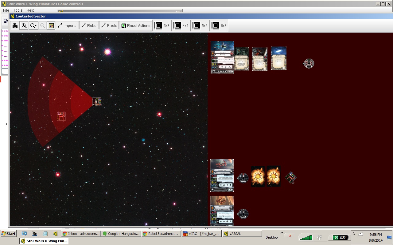 Sconn's b-wing vs Nico's TIE Interceptors. Sconn win.