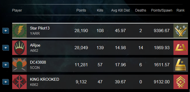 | ADM David "Heavy" Pasiechnyk (Star Pilot13) | 28190 | 108 (0) | 2 |