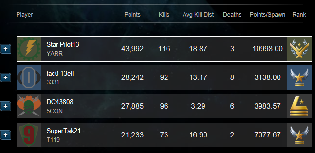 | ADM David "Heavy" Pasiechnyk (Star Pilot13) | 43992 | 116 (0) | 3 |