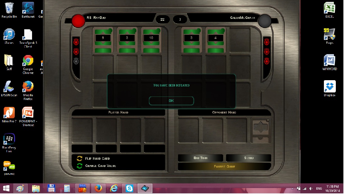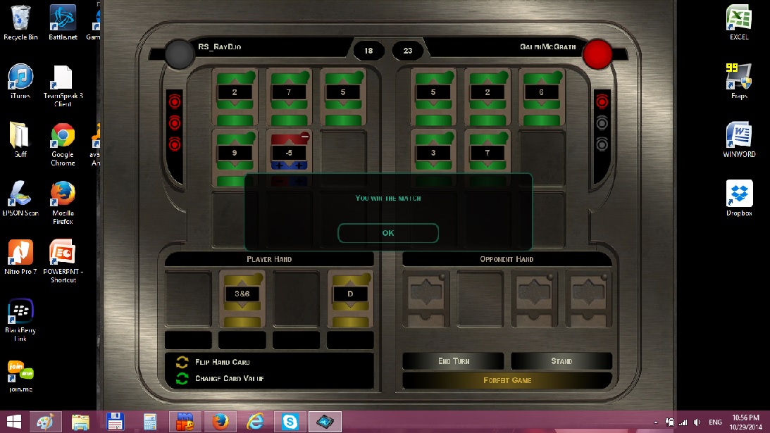 10-29-14 Pazaak. Ray and Galen. Ray won 2/3 games.