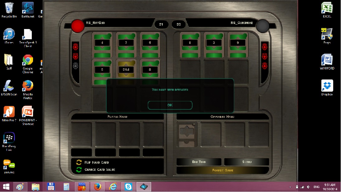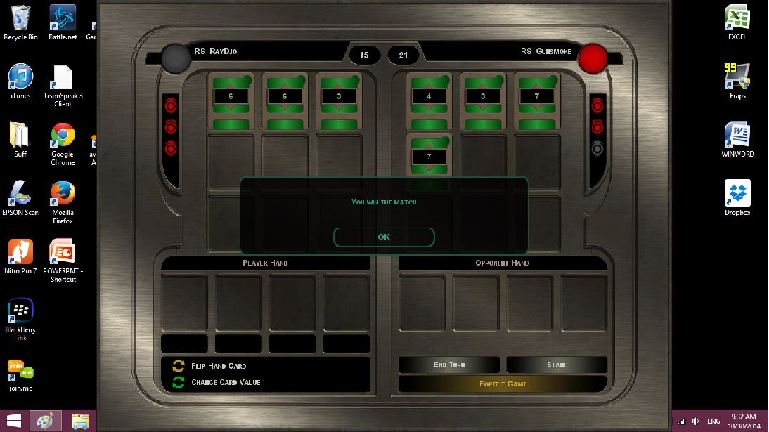 10-30-14 Pazaak. Ray and Jaran. Ray won 2/3 matches.