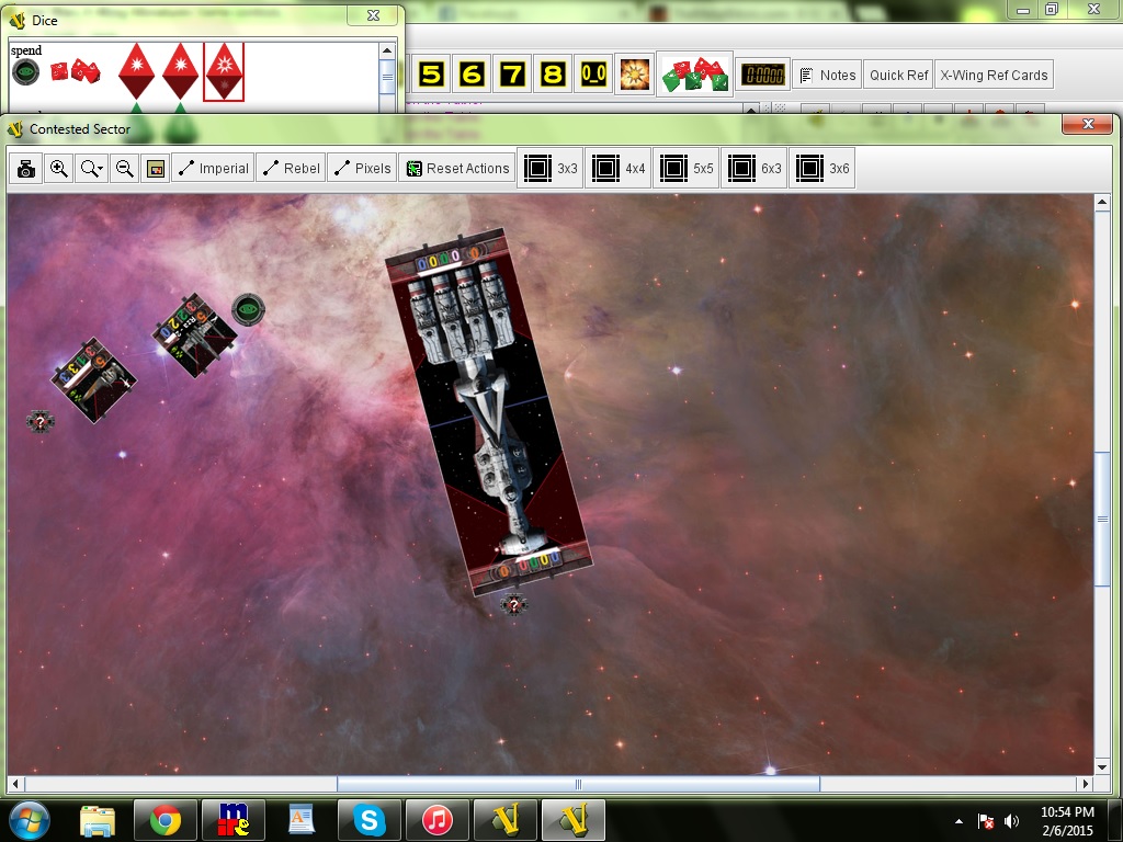 Skrimish Match - Nico in a CR, Stark with 2 X-Wings and Cody in a B-Wing and Z-95. With one X and a Z down, the CR-90 finally succumbed and died.