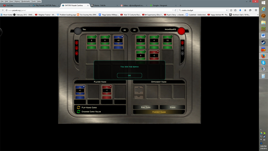 Extra Match Details: Pazaak