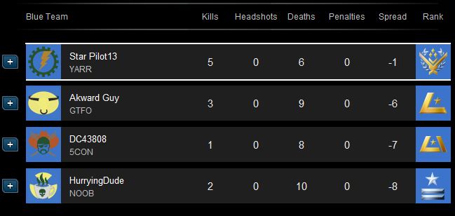 | Player | Score | Kills | Deaths |