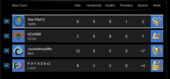 | Player | Score | Kills | Deaths |
