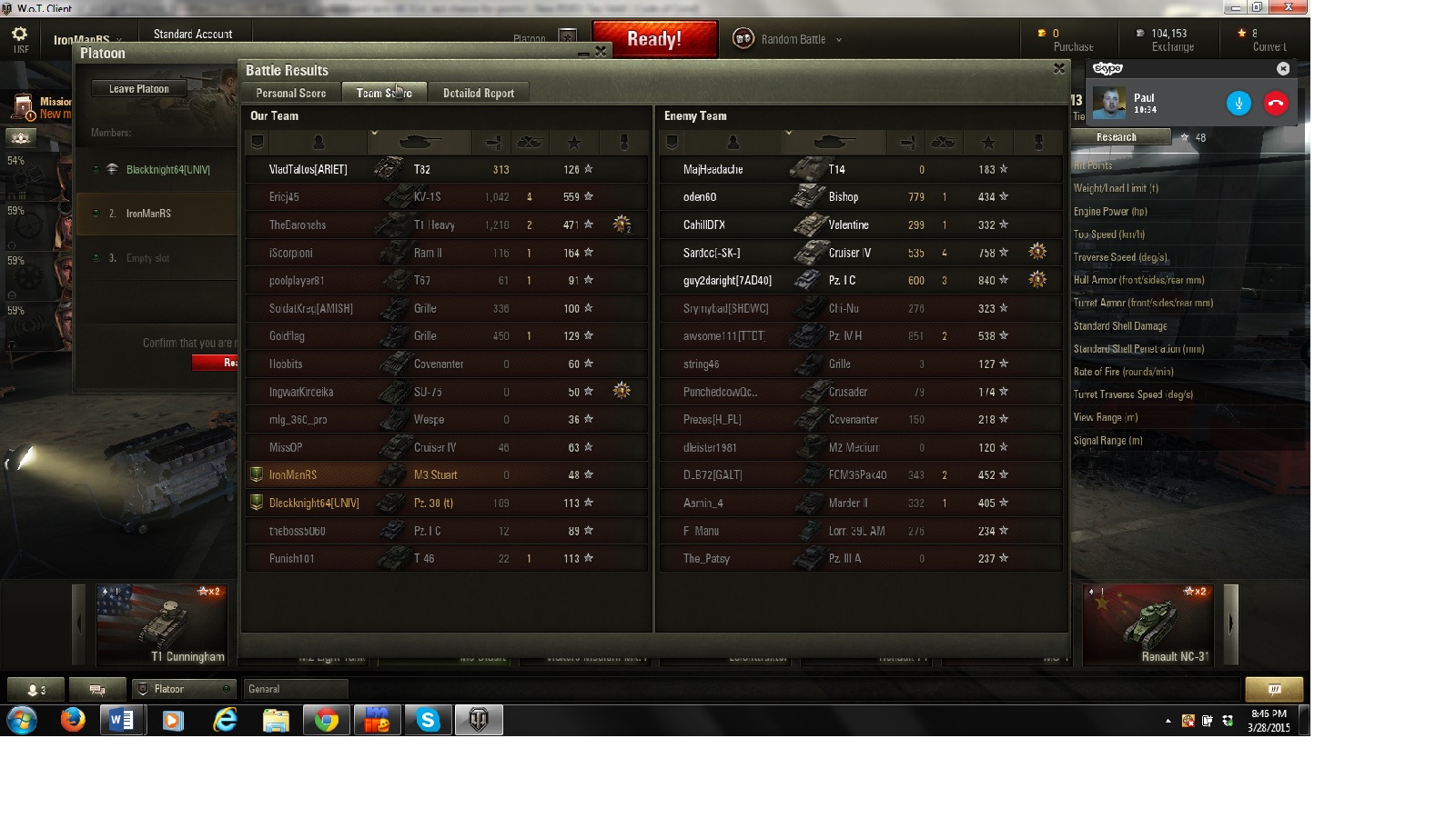 World of Tanks Match Statistics