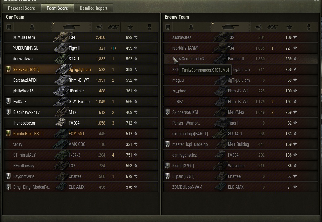 World of Tanks Match Statistics