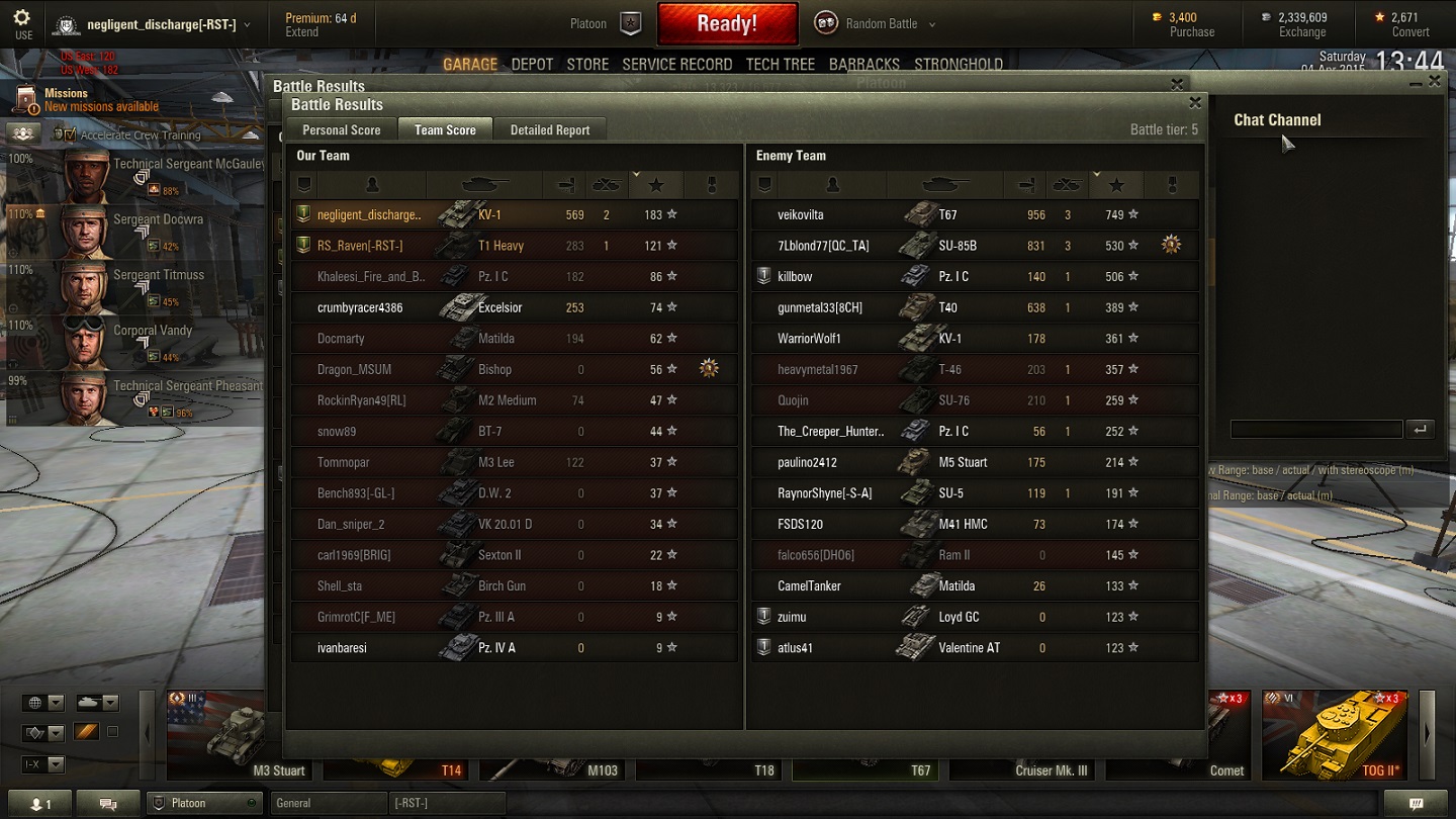 Non-Competitive tanks Match reported on 2015-04-04 18:58:16
