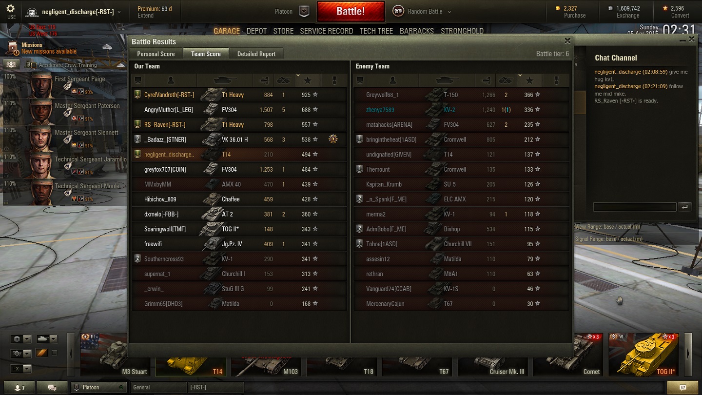 Non-Competitive tanks Match reported on 2015-04-05 19:19:46