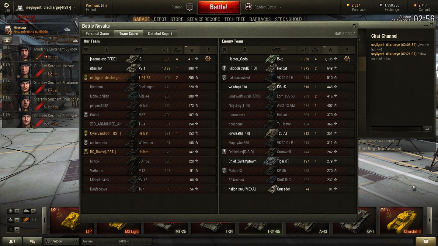 Non-Competitive tanks Match reported on 2015-04-05 19:20:38