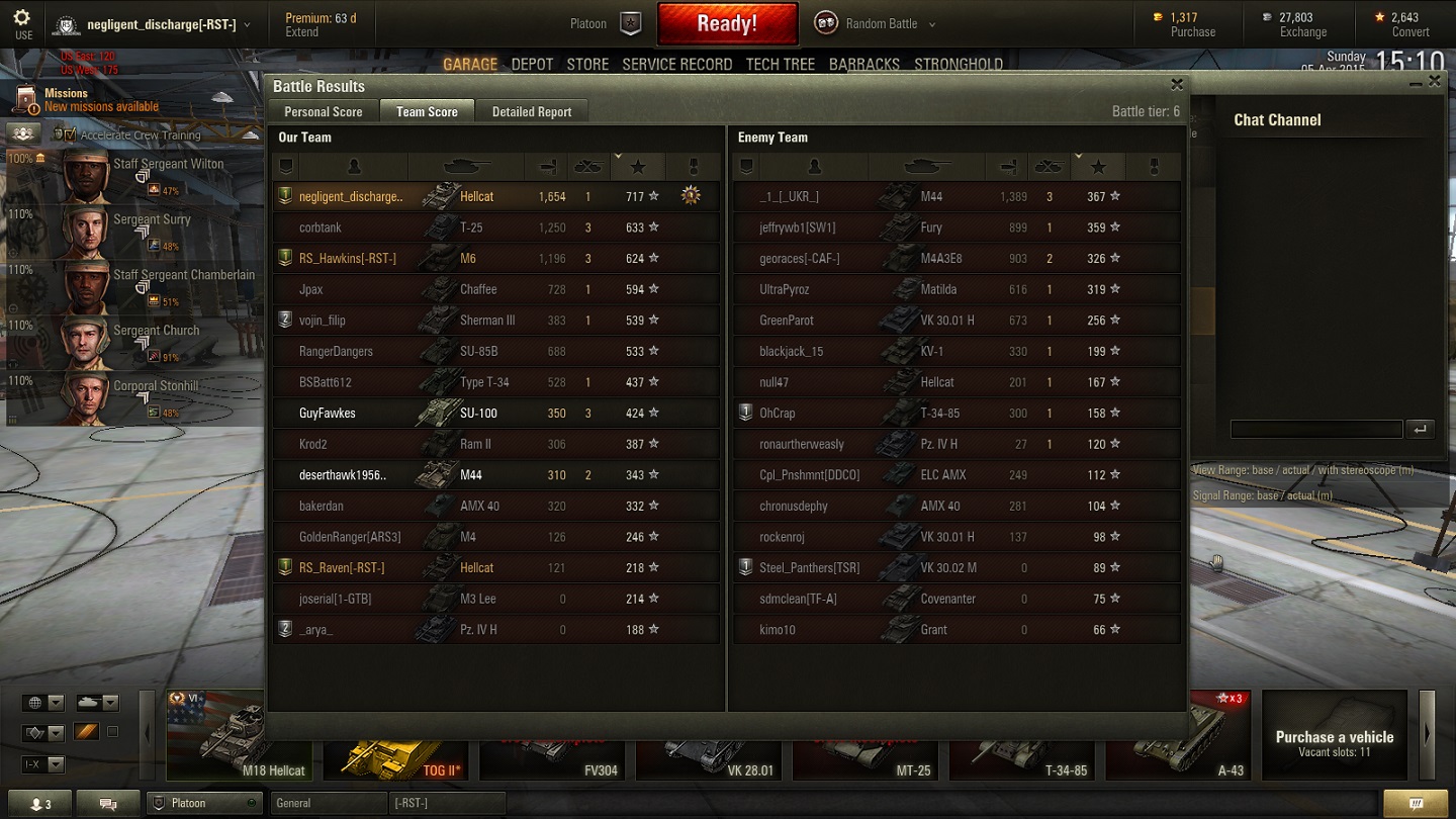 Non-Competitive tanks Match reported on 2015-04-05 19:22:39