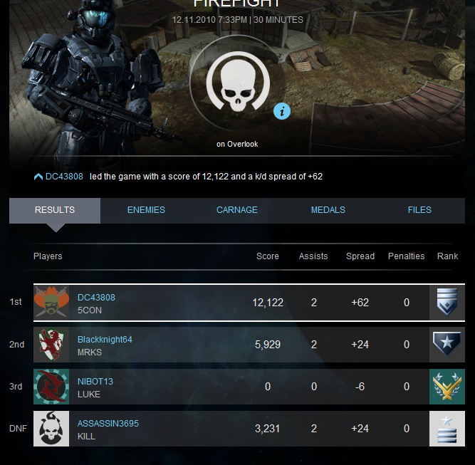 Extra Match Details: Halo: Reach - Firefight Matchmaking mode