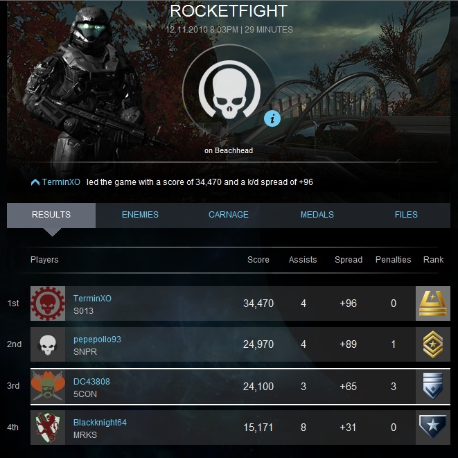 Extra Match Details: Halo: Reach - Firefight Matchmaking mode