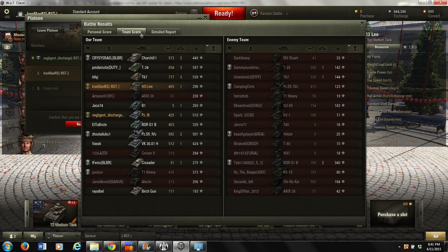 Non-Competitive tanks Match reported on 2015-04-11 21:18:22