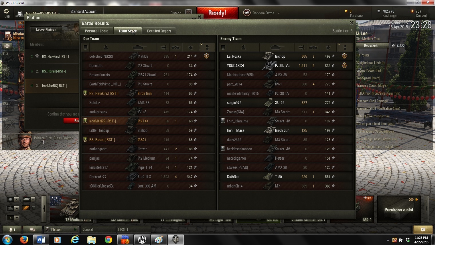 World of Tanks Match Statistics