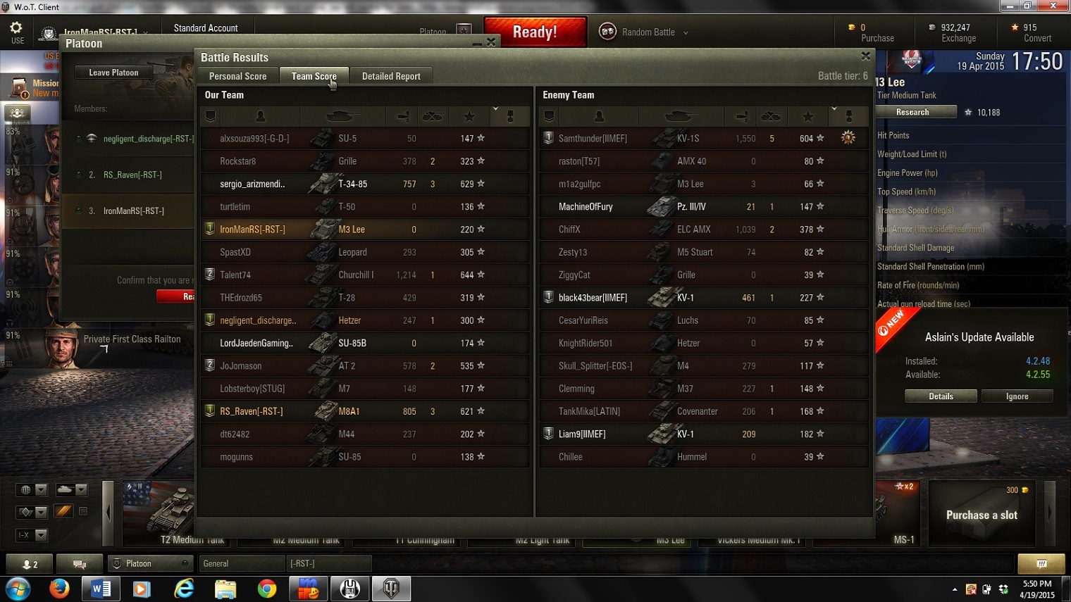 Non-Competitive tanks Match reported on 2015-04-19 17:53:29