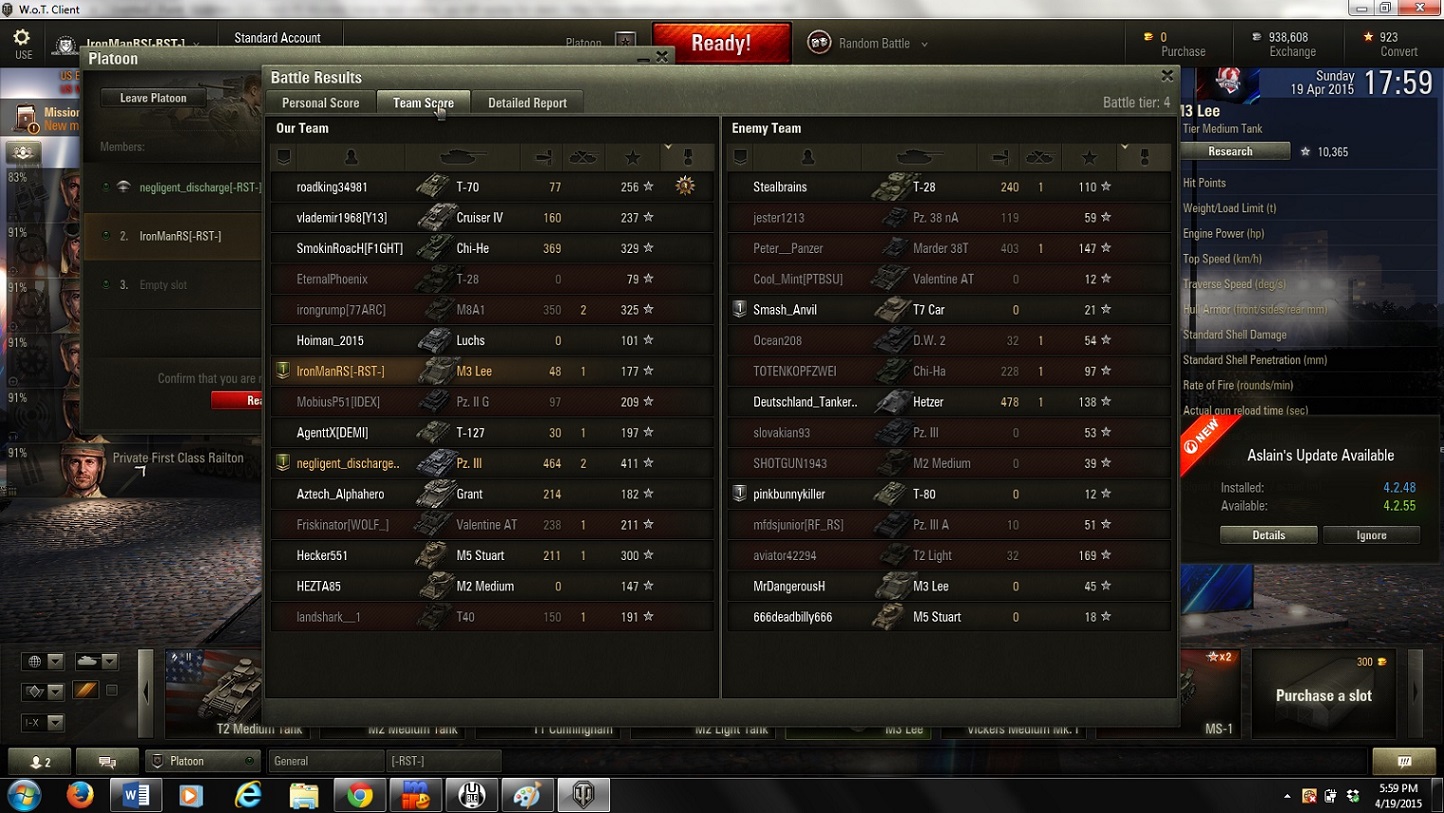 Non-Competitive tanks Match reported on 2015-04-19 18:05:47