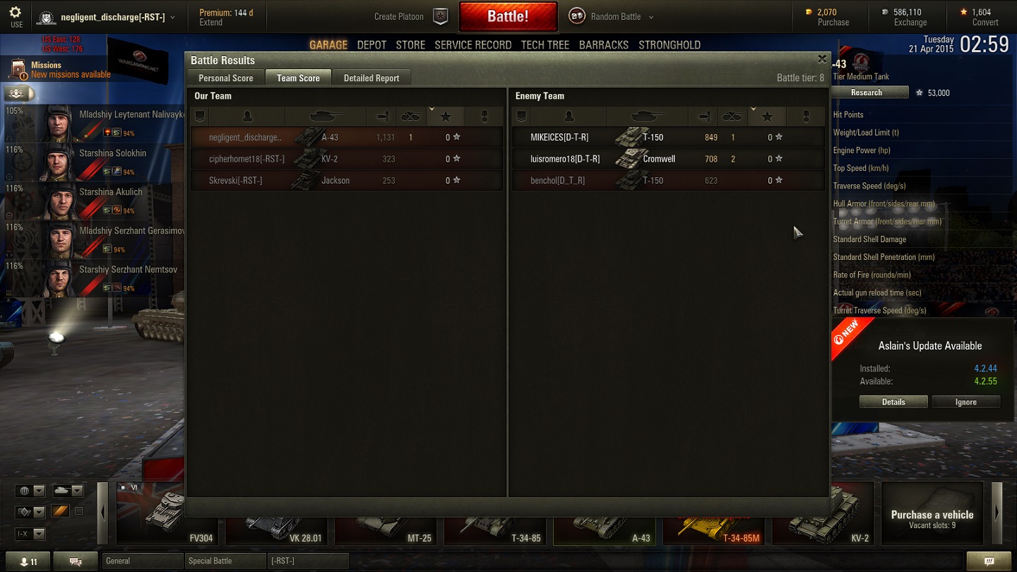 Non-Competitive tanks Match reported on 2015-04-22 18:12:17