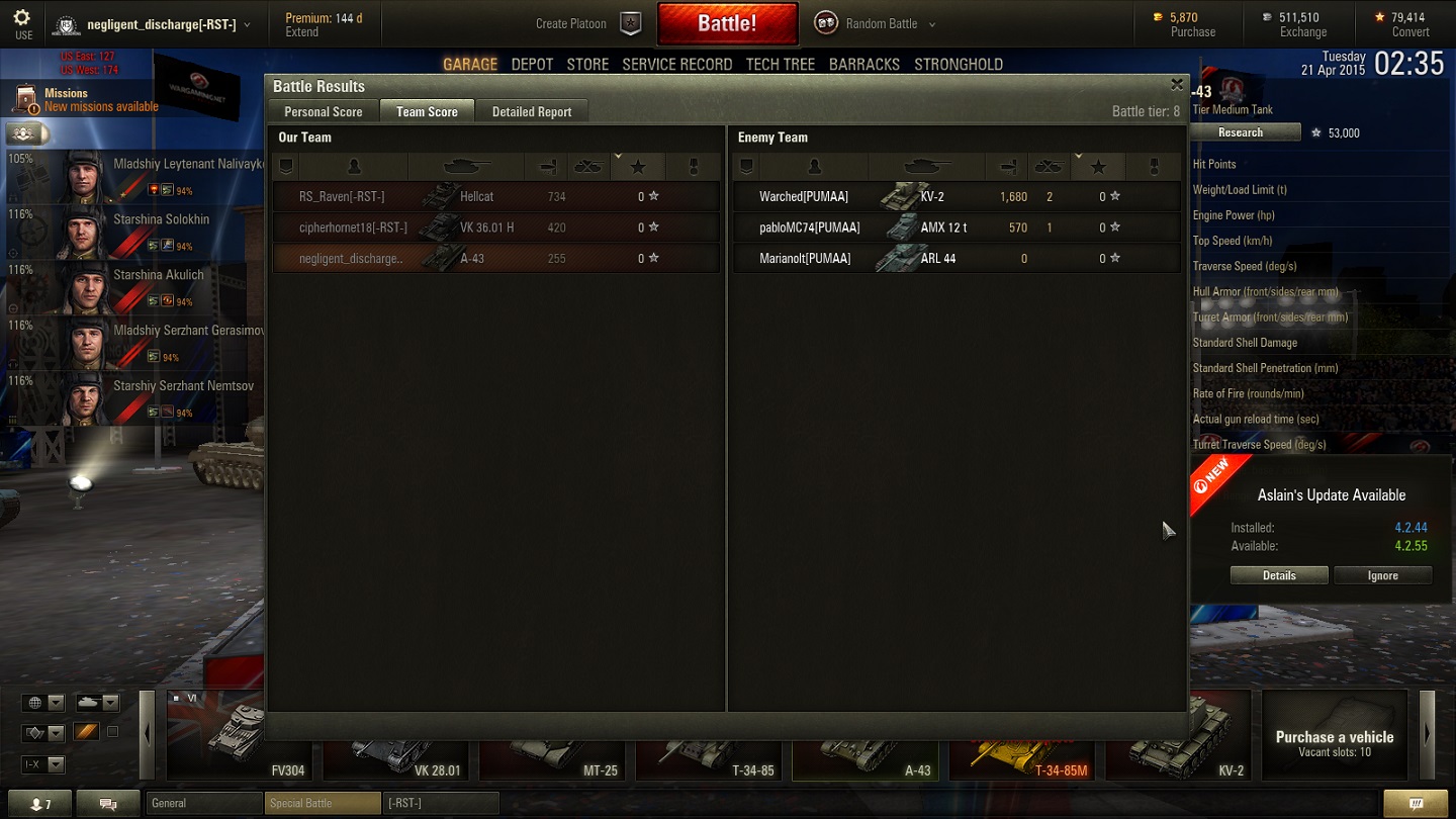 Non-Competitive tanks Match reported on 2015-04-22 18:16:14