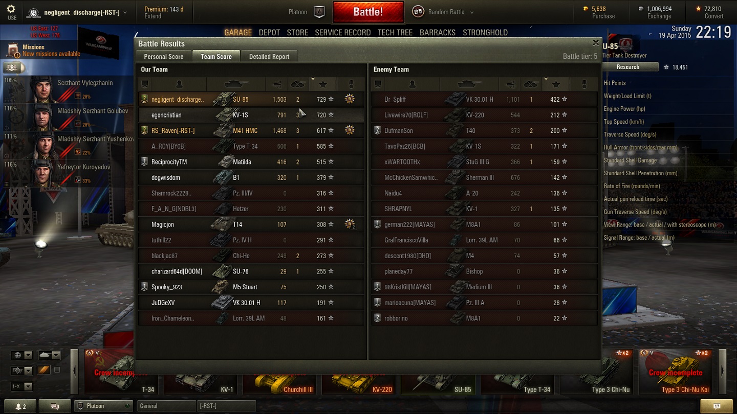 Non-Competitive tanks Match reported on 2015-04-22 18:57:58