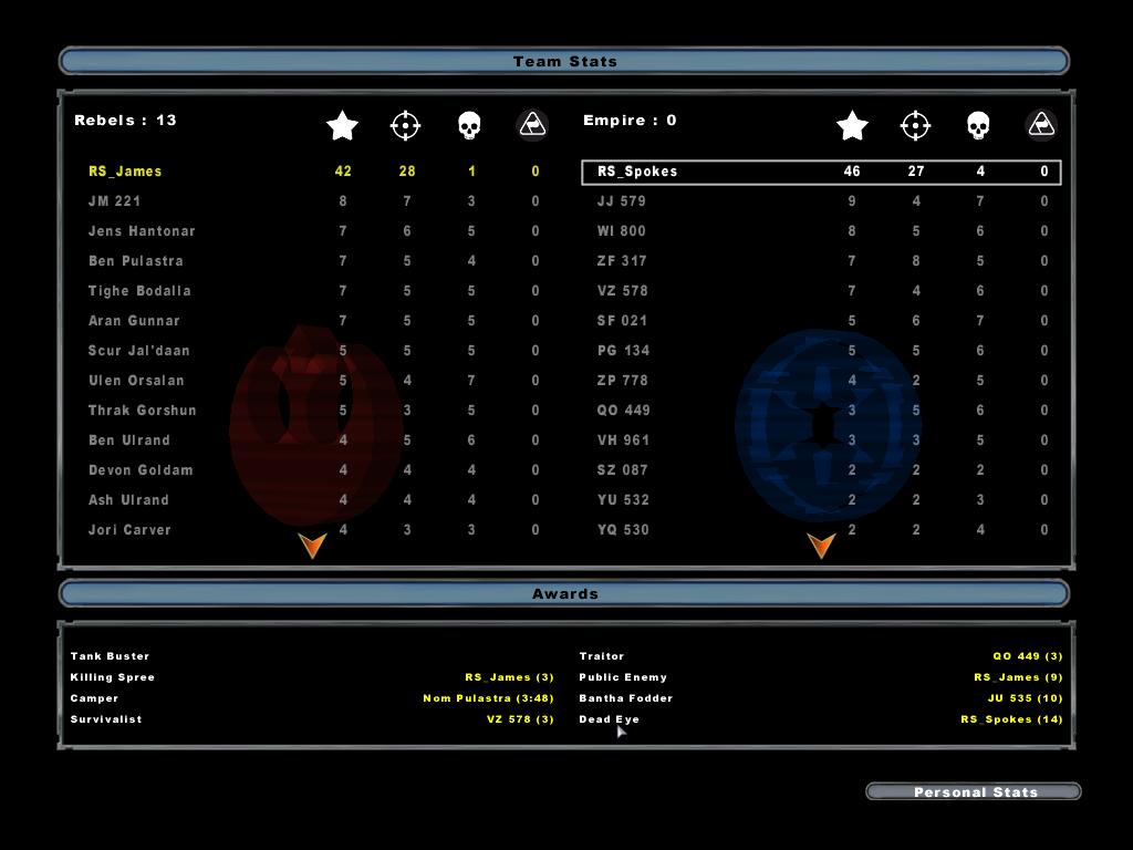 Battlefront II (2005) Match Statistics